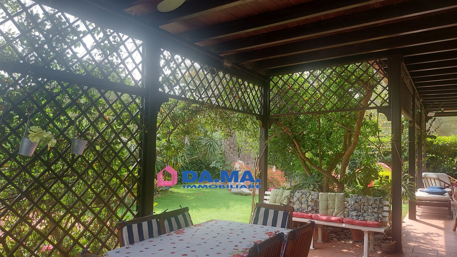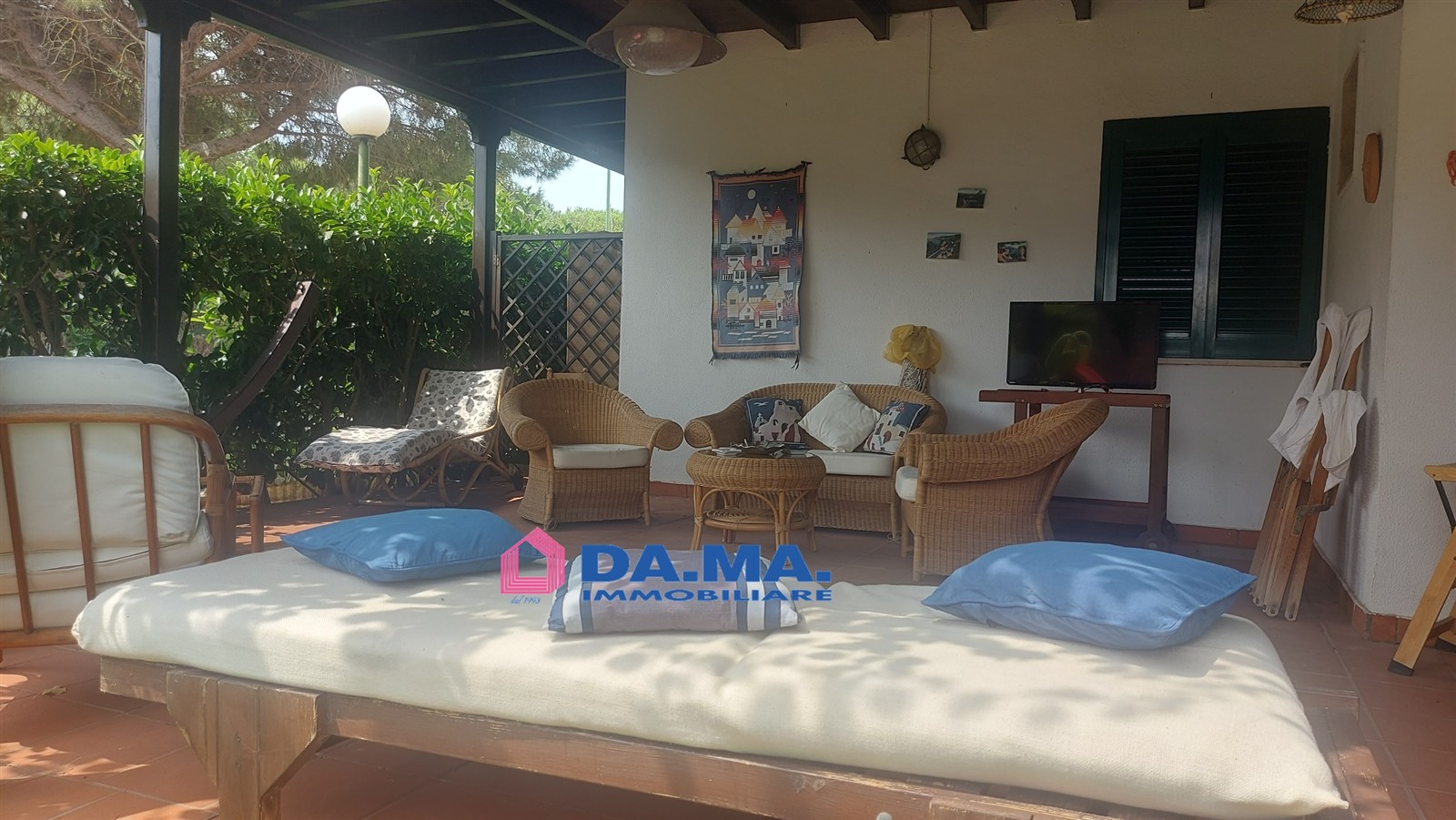 L'abitazione di mq. 40 circa è composto da un ingresso-soggiorno con cucina a vista, 1 camere da letto e bagno con doccia ma il valore aggiunto della proprietà è il grande porticato in legno di mq. 70 che permette di vivere piacevolmente all'aperto unitamente al bellissimo giardino di mq. 130 con piante fiorite e mediterranee. Tutta la proprietà è circondata da siepi che schermano la vista ai passanti.